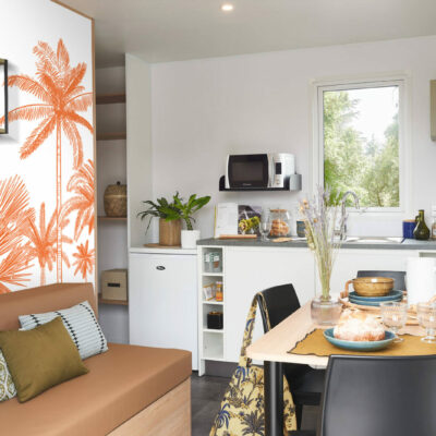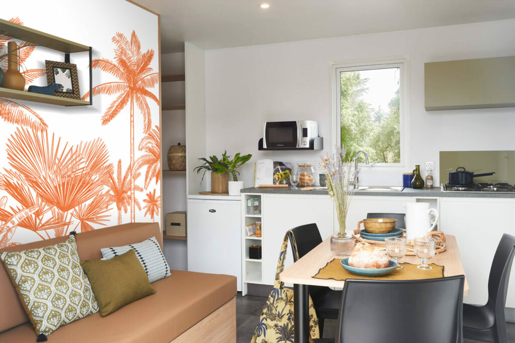 livraison gratuite fresque murale tapisserie repositionnable motif cactus et fleur Mexique sur-mesure meilleur prix mobil-home cuisine+