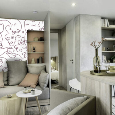 D’une seule ligne, les visages se connectent entre eux. Ce papier peint abstrait et artistique est un choix incontournable pour ajouter une touche de singularité et de convivialité à votre intérieur.