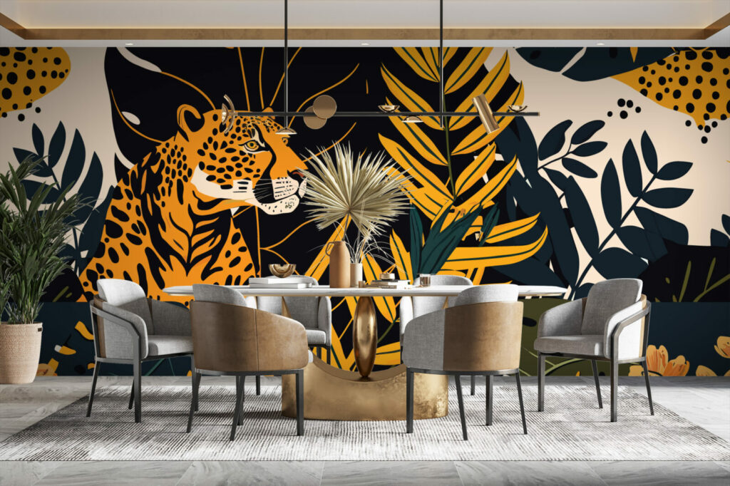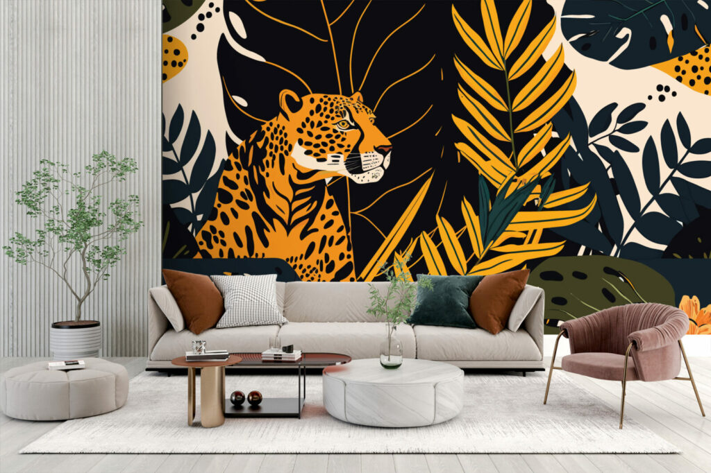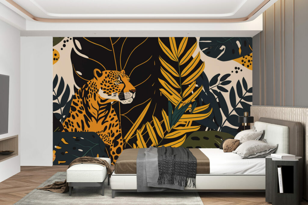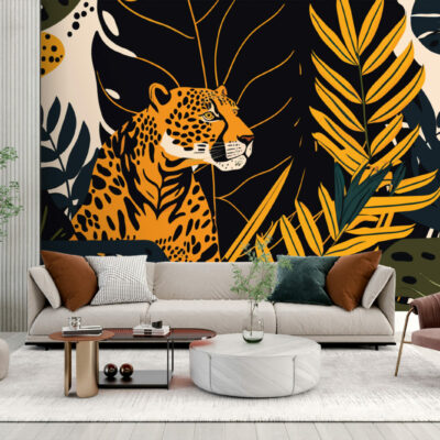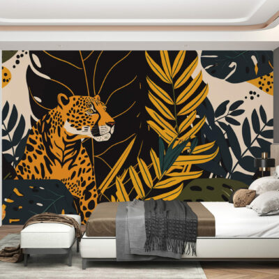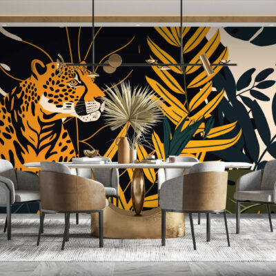 Ce motif accrocheur ajoute de l’éclat à n’importe quelle pièce de votre maison tout en créant l’équilibre parfait entre la vitalité sauvage et le chic sophistiqué. Avec ses couleurs de feuillages parfaitement équilibrées, ce style glamour ne manquera pas de réveiller les espaces de repos de votre maison et de les transformer en havres de paix luxueux. Que vous l’utilisiez comme mur d’accent ou dans l’ensemble de votre espace, il est indéniable que la qualité de ce papier peint Wild Léopard au motif exotique glamour élèvera votre décor de plusieurs crans ! Pour une déco Africaine, tout en élégance, le papier peint Wild Léopard est un choix audacieux. Ce papier panoramique très réaliste aux couleurs vert, noir, blanc et fauves, contribue largement au charme de votre espace de vie. Conviendra tout aussi bien dans une chambre, un salon, une salle à mange, un bureau, un espace détente. Le léopard est un animal très apprécié en décoration. A l’affût de sa proie le Léopard attire immédiatement notre regard pour un sentiment étrange et pénétrant, qui rend ce papier peint si envoûtant.