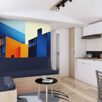 vente tapisserie autocollant boho modern art déco personnalisable qualitatif meilleur prix mobil-home pièce de vie+