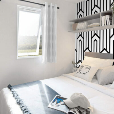Classique et moderne, ce papier peint aux lignes graphiques s’harmonise parfaitement. Idéal pour donner de la hauteur à vos murs.