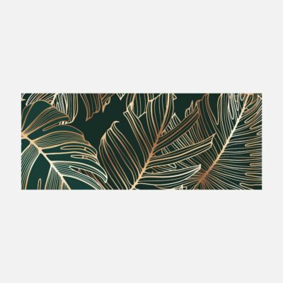 Osez une touche de nature luxuriante avec notre sticker jungle chic, habillé du motif exclusif Selva Oro. Ce design graphique mêle élégamment des feuilles exotiques dorées à un fond vert forêt profond, pour une ambiance à la fois naturelle et raffinée.