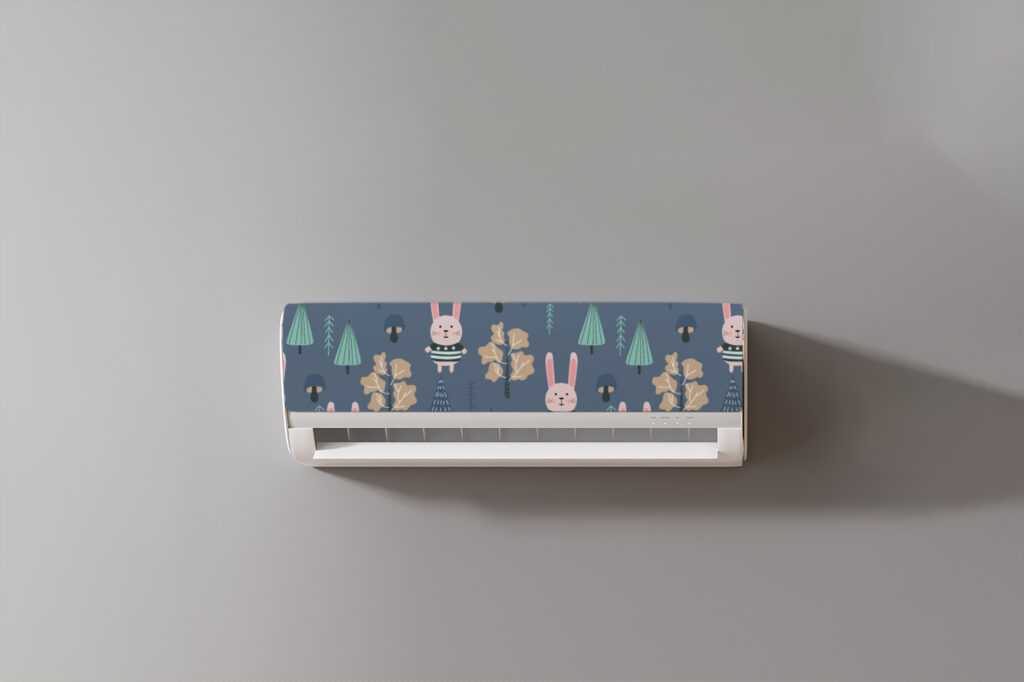 Ce sticker pour climatisation Sweet Bunny a été pensé pour plaire aux plus petits comme aux grands. Avec ses lapins souriants, ses arbres stylisés et ses champignons, il raconte une histoire. Il stimule l’imaginaire et crée une ambiance apaisante, idéale pour une chambre d’enfant. Les teintes bleu nuit, rose poudré et vert sauge s’harmonisent parfaitement pour un rendu équilibré, ni trop vif ni trop fade. Le design est à la fois ludique, graphique et moderne.