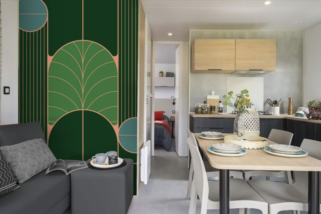 vente tapisserie autocollant boho modern art déco personnalisable qualitatif meilleur prix mobil-home pièce de vie+