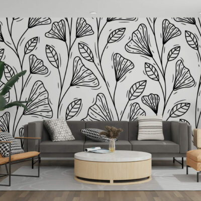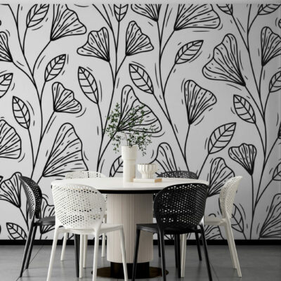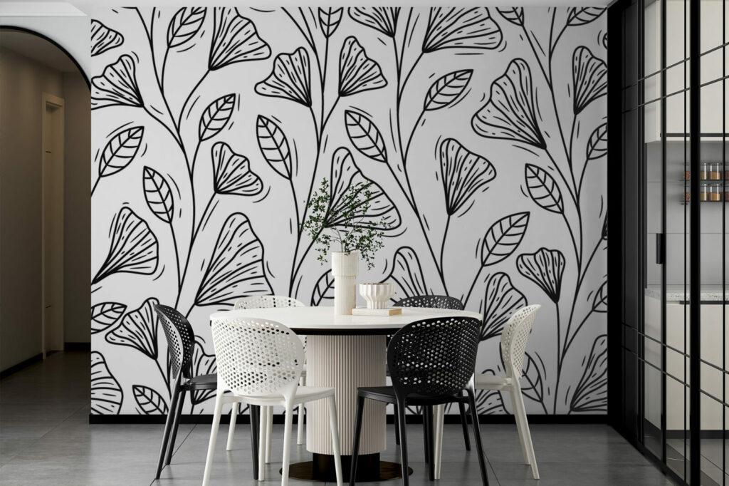 papier peint panoramique motifs japandi scandiboho végétal noir & blanc enfants géométrique vintage paysage wallpaper décoration murale décoration intérieur mobil-home